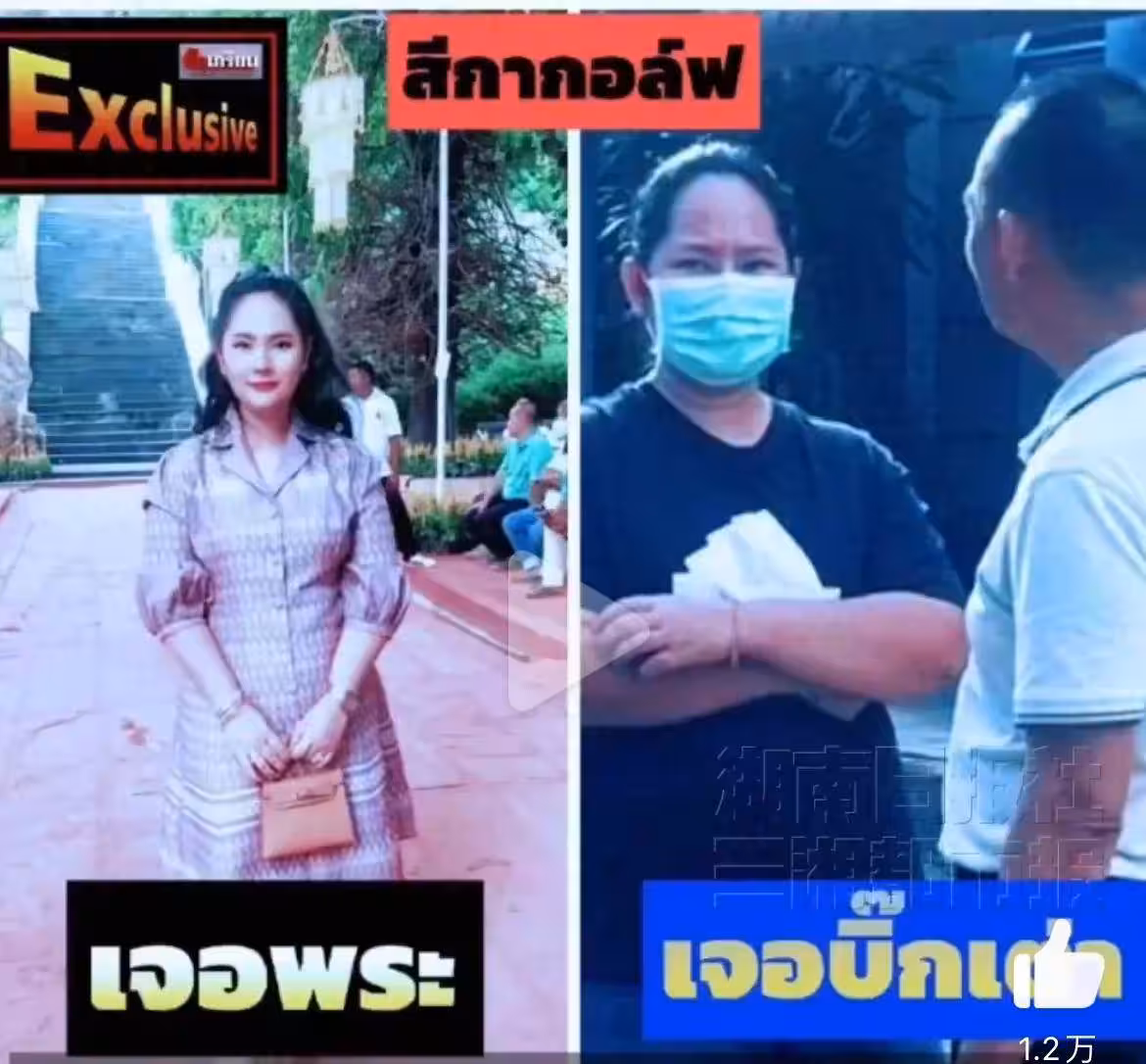 泰國媒體曝光了「高爾夫女士」的真實照片,一張是她跟僧侶約會時的樣子,另一張則是被警方找到後的樣子。