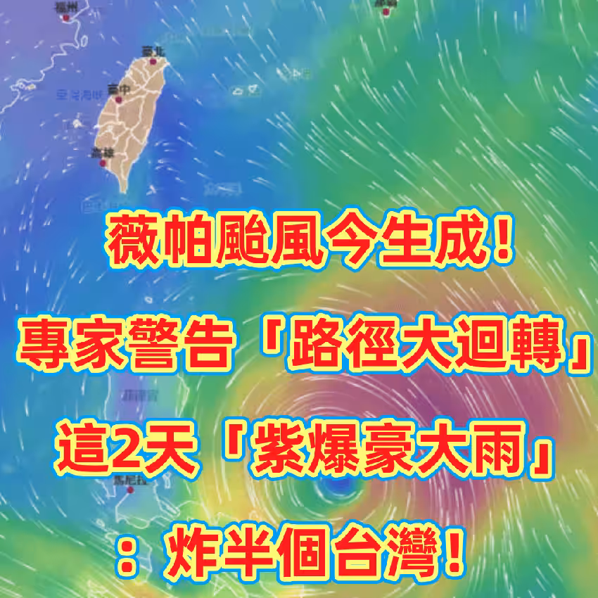 薇帕颱風今生成!專家警告「路徑大迴轉」 這2天「紫爆豪大雨」:炸半個台灣