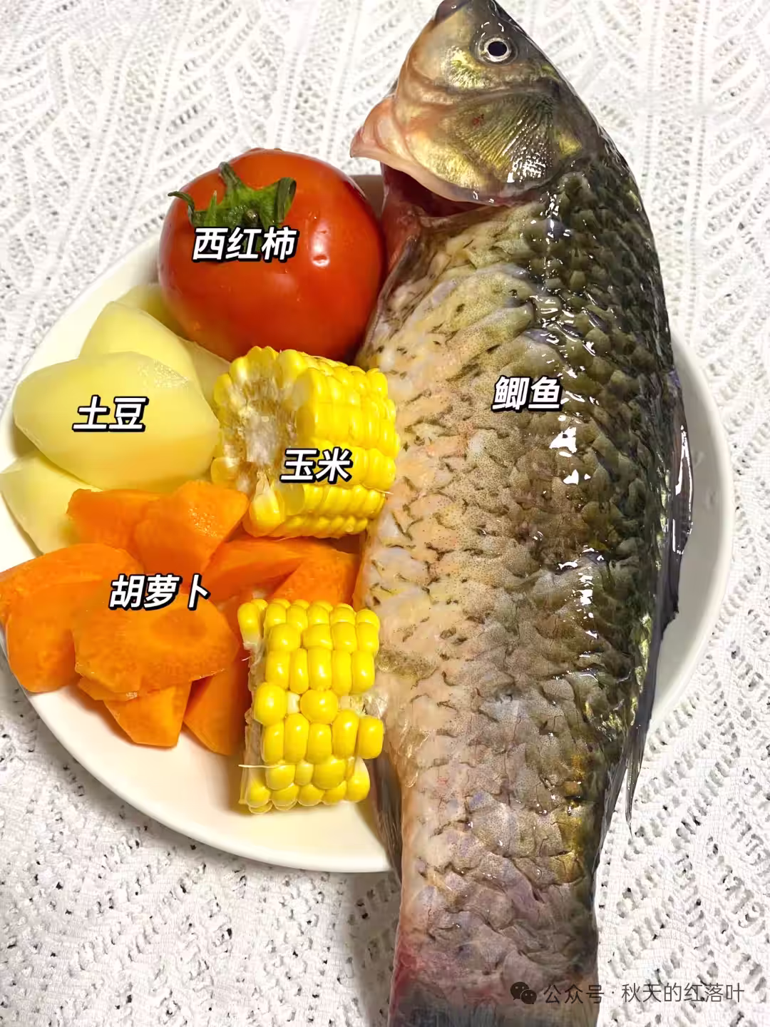 【食材】鯽魚、土豆、西紅柿、玉米、胡蘿蔔