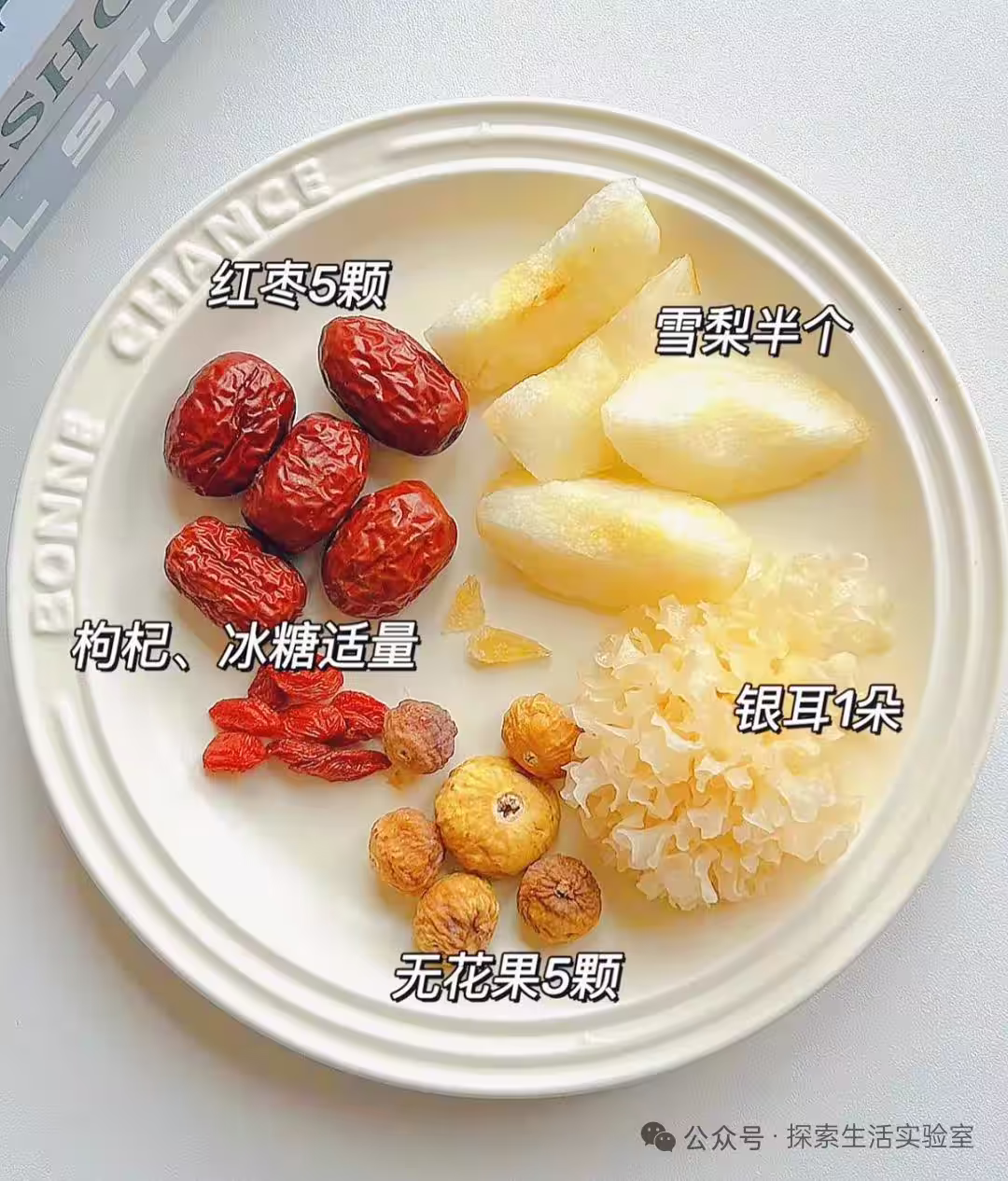 📖食材 干無花果5顆、干銀耳1小朵、梨子半個、紅棗5顆、枸杞冰糖適量