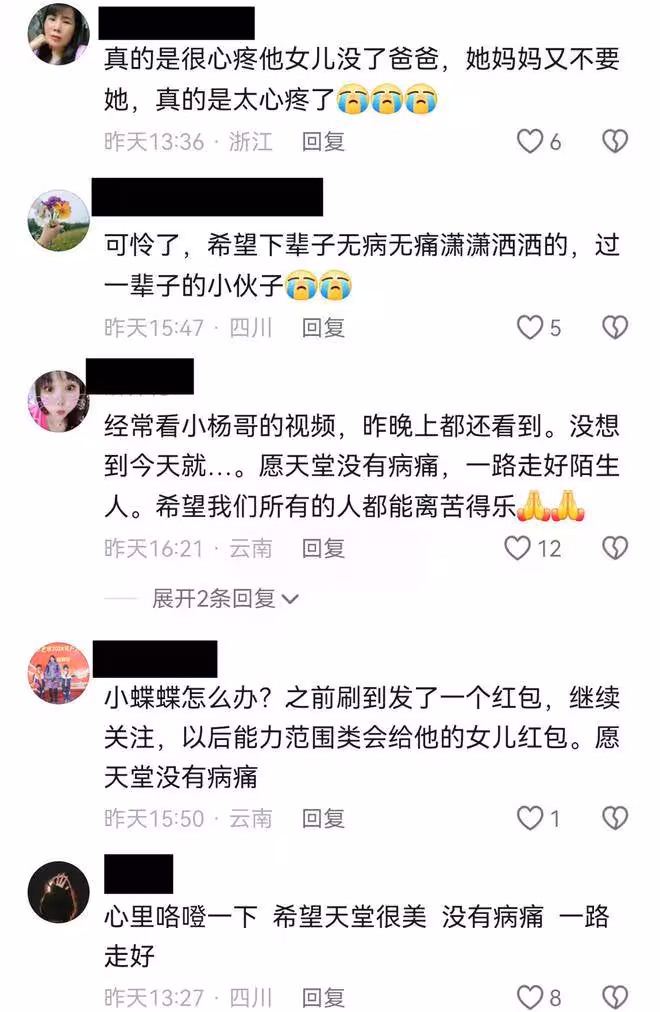 在評論區,粉絲們在悼念小楊哥的同時,非常心疼小楊哥的女兒,他的女兒才11歲。
