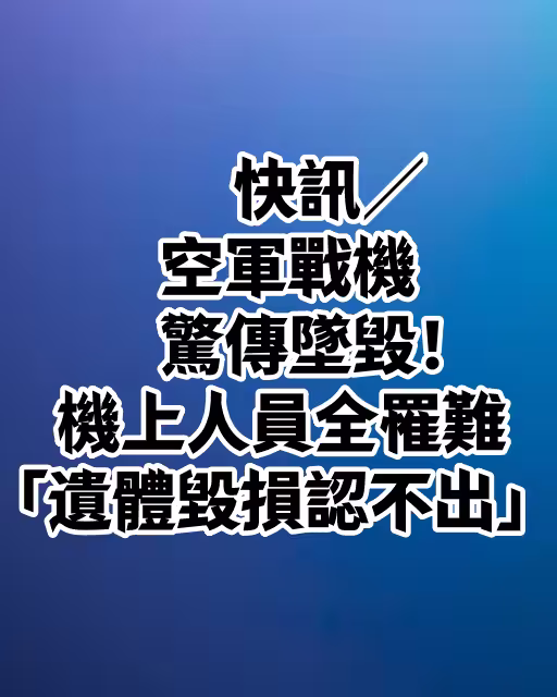 快訊/空軍戰機驚傳墜毀!機上人員全罹難「遺體毀損認不出.....」