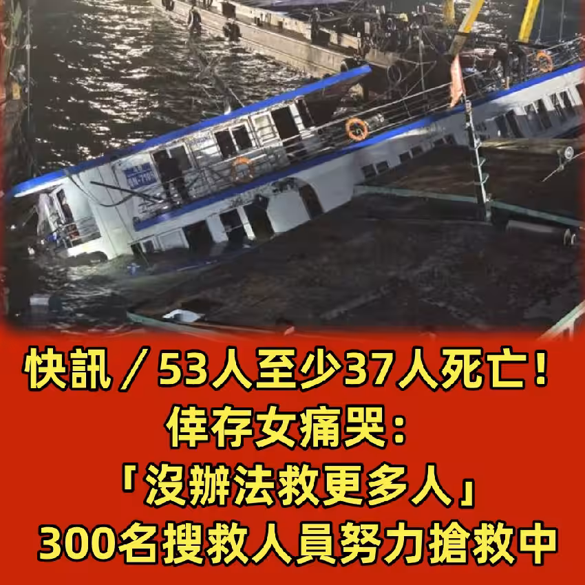 53人至少37人死亡!倖存女痛哭:「沒辦法救更多人」 300名搜救人員努力搶救中