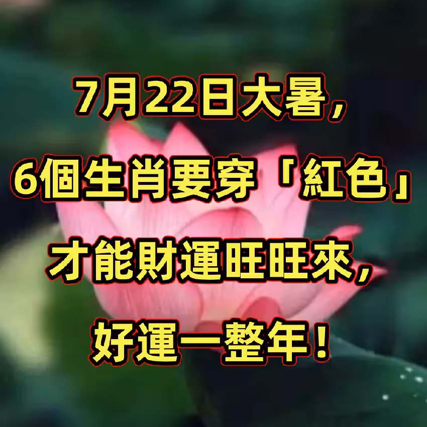 7月22日大暑,6個生肖要穿「紅色」才能財運旺旺來,好運一整年!