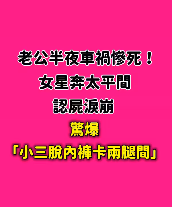 老公半夜車禍慘死!女星奔太平間認屍淚崩 驚爆「小 三褲褲卡兩腿間」