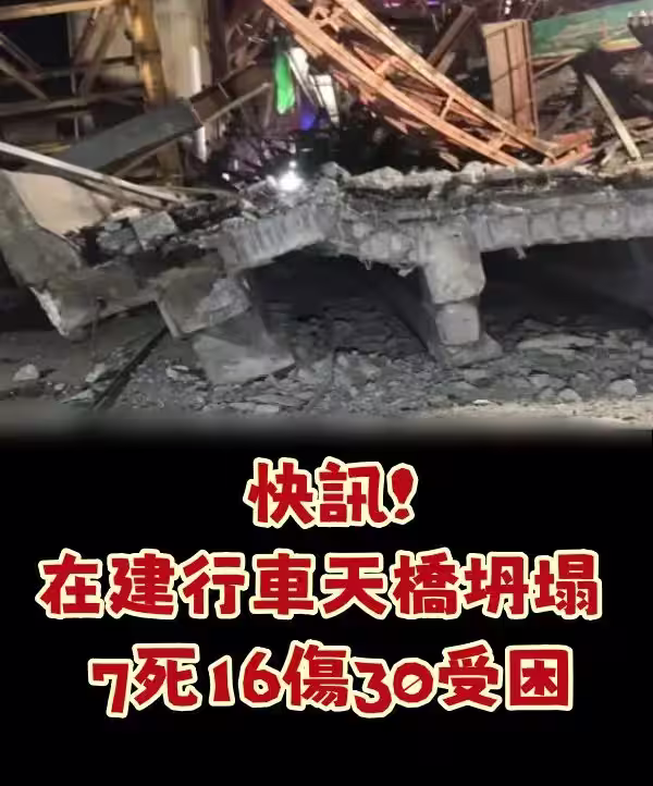 快訊!在建行車天橋坍塌 7死16傷30受困.
