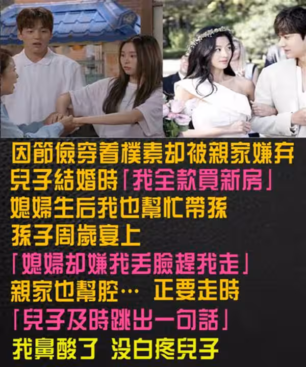 因節儉穿著樸素卻被親家嫌棄 ! 兒子結婚時「 我全款買新房」媳婦生後我也幫忙帶孫,孫子周歲宴上「媳婦卻嫌我丟臉趕我走」親家也幫腔…正要走時「兒子及時跳出一句話」我鼻酸了:沒白疼
