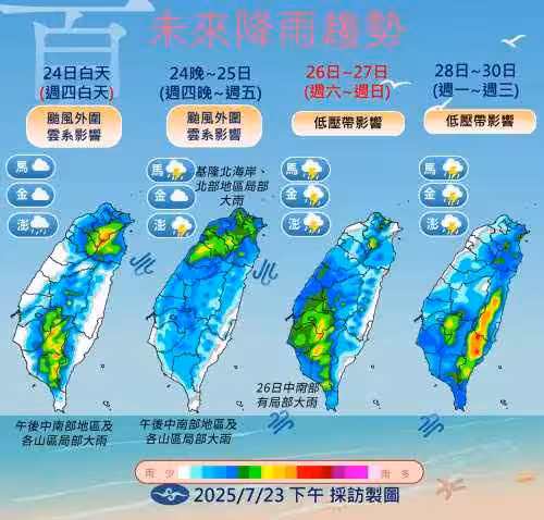 周六罷免投票日遇到雙颱風攪局!停班停課機率、能投票嗎?然而本周六就是726大罷免投票日,許多選民也關心雙颱風影響如何,萬一停班停課還能不能投票?根據目前颱風最新路徑以及強度來看,周六停班停課的機率偏低,兩個颱風都沒有直接對台威脅。