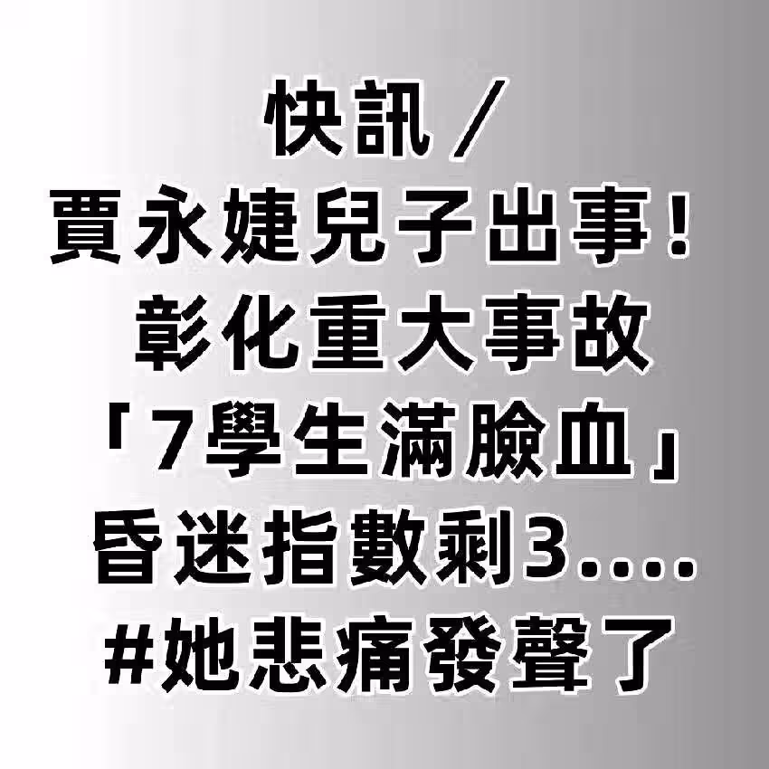 快訊/賈永婕兒子出事!彰化重大事故「7學生滿臉血」昏迷指數剩3.... #她悲痛發聲了!