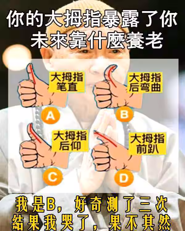 你的大拇指暴露了你未來靠什麼養老!太准了!!