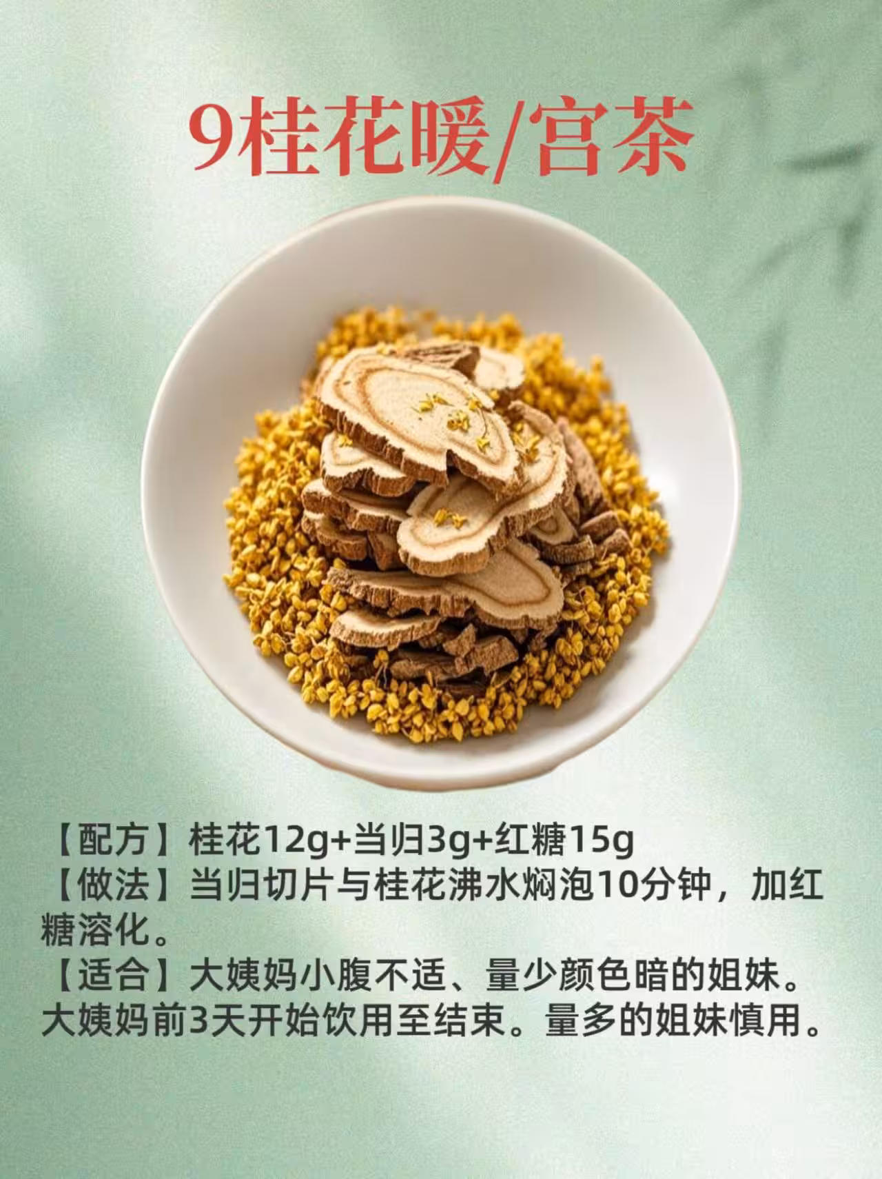 🌸桂花暖/宮茶:大姨媽小腹不適的姐妹,試試這款暖/宮茶。桂花、當歸、紅糖,沸水燜泡,喝完小腹暖暖的,大姨媽也順暢了~