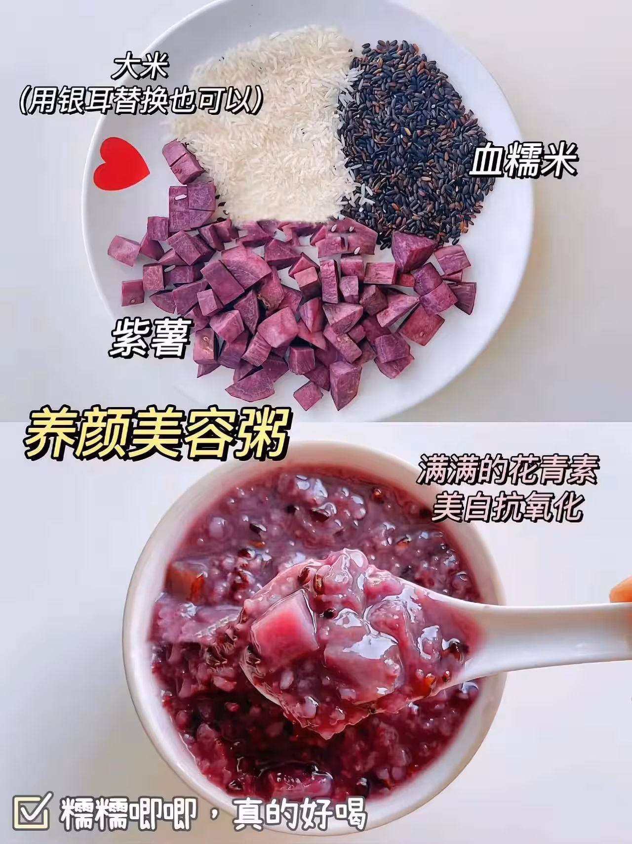 💫可以把大米換成銀耳,更好好,紫薯含花青素,mei白,養顏,抗氧化,夏天也可以喝