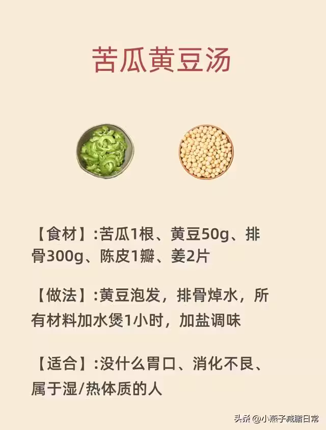 食材:苦瓜1根、黃豆50g、排骨300g、陳皮1瓣、姜2片