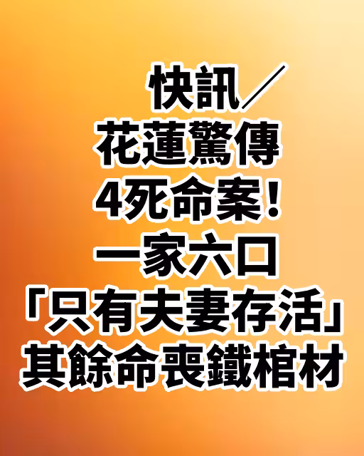 快訊/花蓮驚傳4死命案 !一家六口「只有夫妻存活」其餘命喪鐵棺材