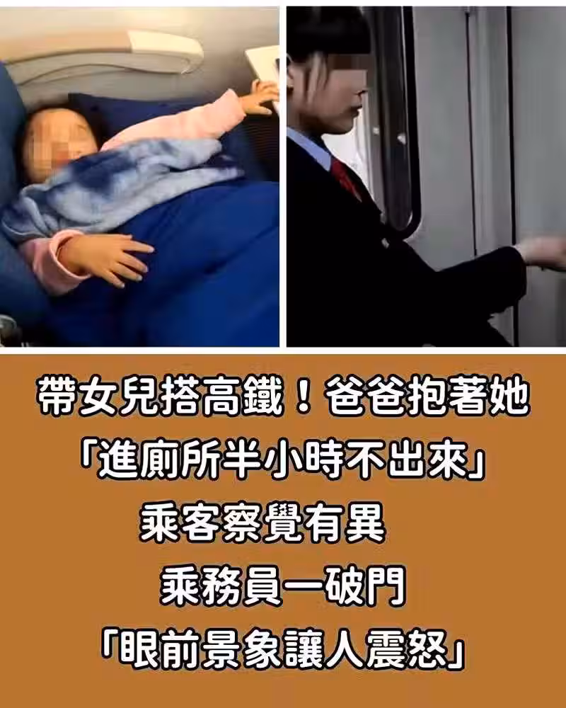 帶女兒搭區間車!爸爸抱著她「進廁所半小時不出來」乘客察覺有異 乘務員一破門「眼前景象讓人震怒 !」