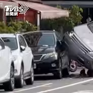 開車「騎上」路邊車!休旅車疊羅漢懸空 駕駛:打噴嚏分心