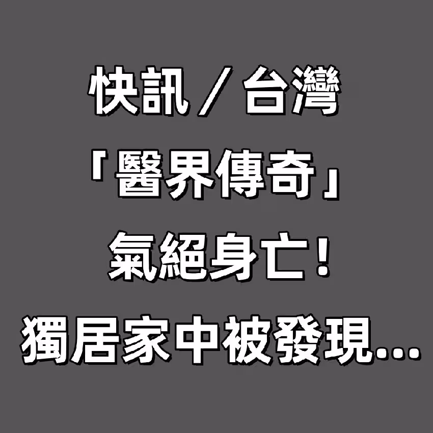 快訊/台灣「醫界傳奇」氣絕身亡!獨居家中被發現...