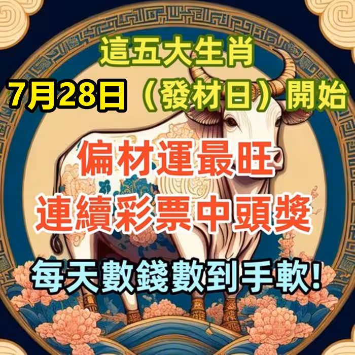 這五大生肖,7月28日(發材日)開始偏材運最旺,連續彩票中頭獎,每天數錢數到手軟!