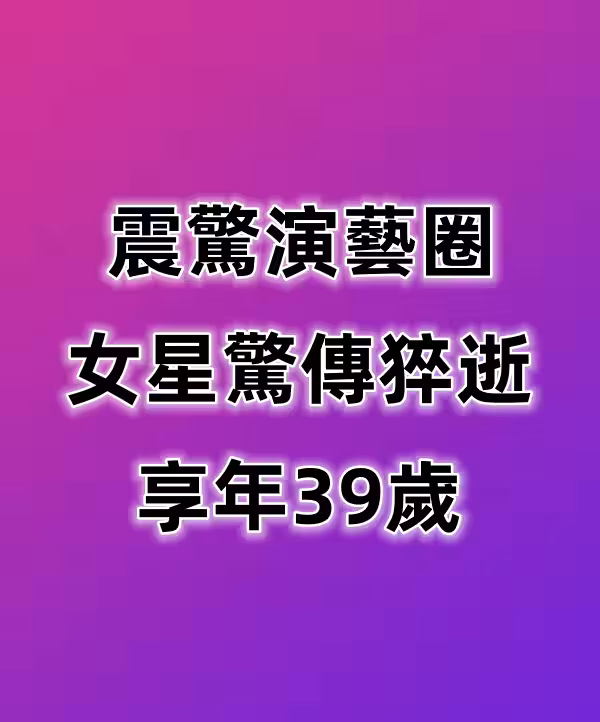 震驚演藝圈 女星驚傳猝逝 享年39歲
