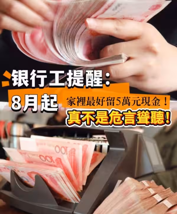 銀行員工提醒:8月起,家裡最好留5萬元現金!