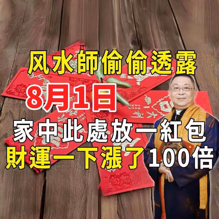 風水師偷偷透露:8月1日在家中這個地方放一個紅包,竟能讓財運100倍暴漲,好運一路旺到底!