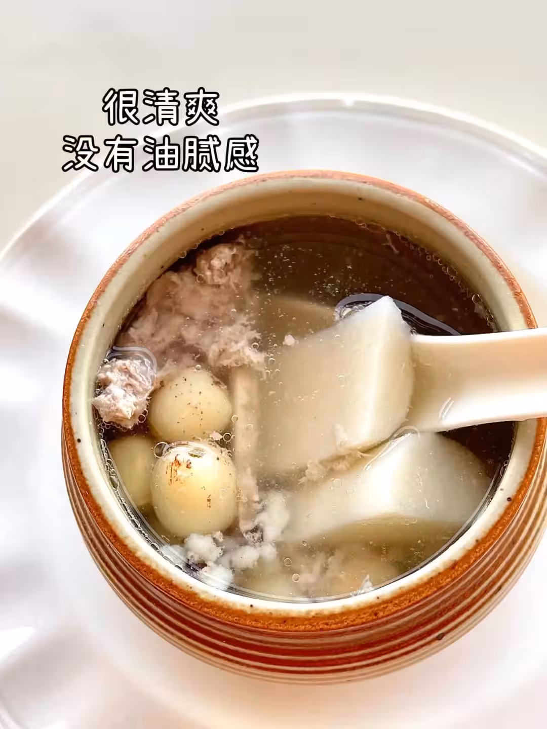 ✅山藥和蓮子燉出來糯糯的,和瘦肉一起燉出來的湯沒有很重的藥材味,清潤解膩,大人寶寶都愛喝