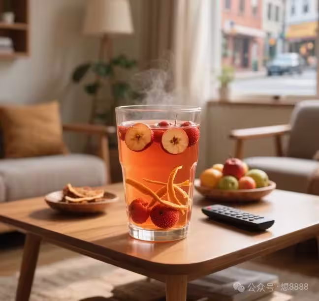這杯喝起來酸酸甜甜,帶著陳皮特有的清苦香,像喝果茶似的。中醫說山楂消肉食積滯,陳皮能理氣化痰,倆搭配著喝,就像給脾胃來了場「大掃除」。下午泡一杯慢慢喝,肚子裡脹脹的感覺會鬆快不少,連打嗝都沒那麼酸臭了。