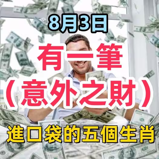 8月3日開始有一筆意外之財進口袋,恭喜五個生肖鈔票滾滾來