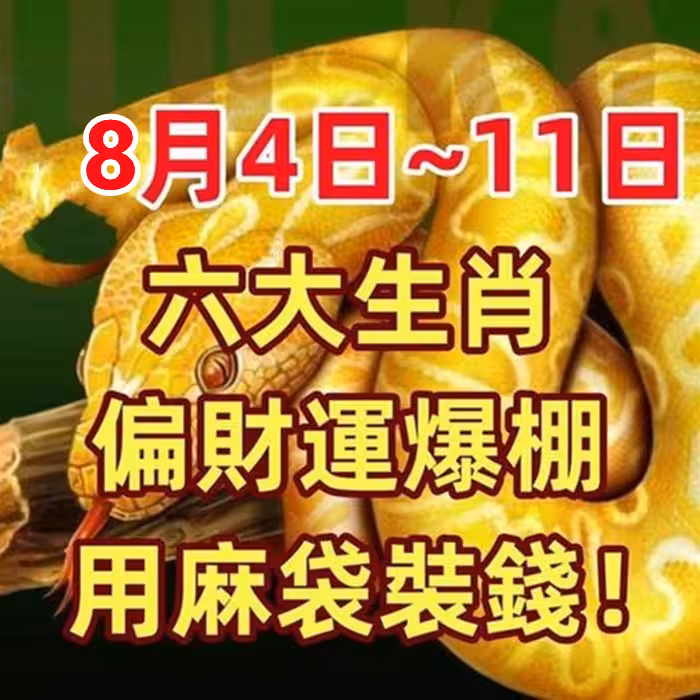 (8月4日~11日)六大生肖偏財運爆棚,中得頭獎用麻袋裝錢!