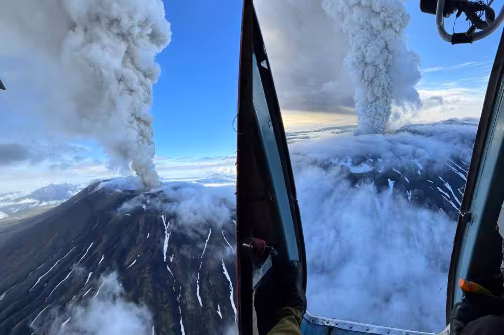 俄火山「600年首度噴發」!灰柱噴6000米高 橙色航空警戒