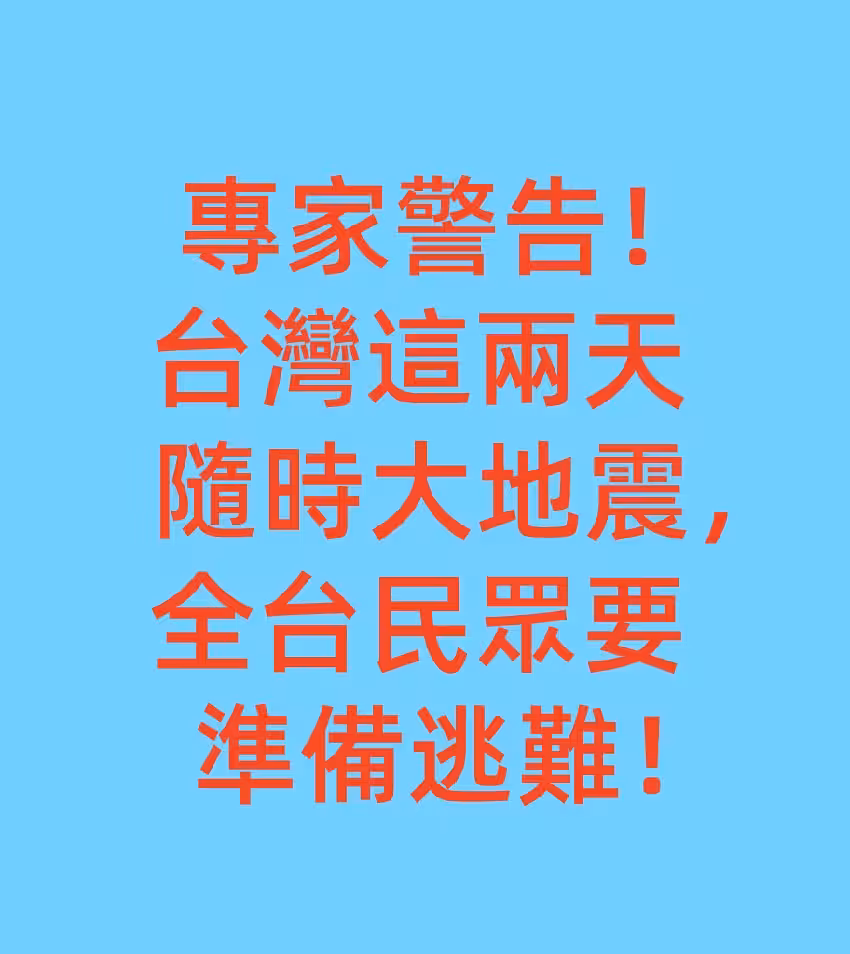 專家警告!「台灣這兩天隨時大地震,全台民眾要準備逃難!」