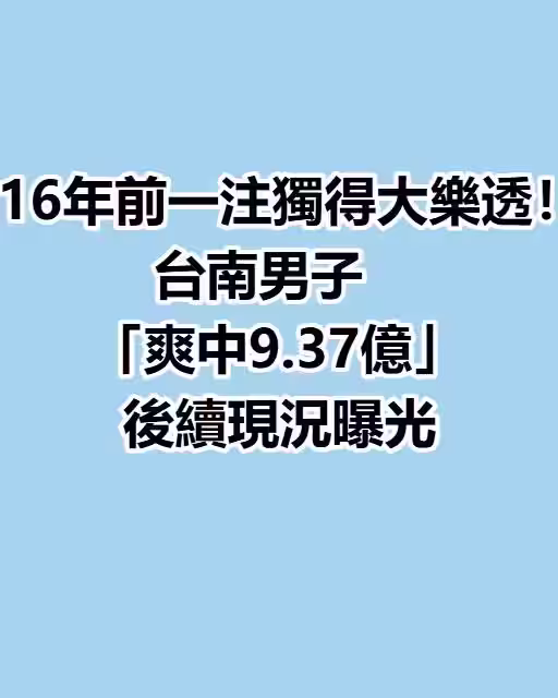 16年前一注獨得大樂透!台南男子「爽中9.37億」後續現況曝光!
