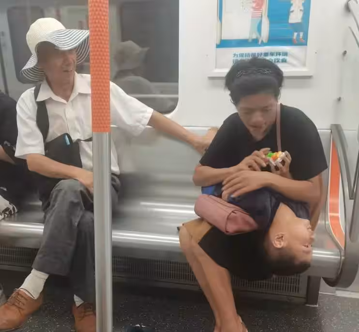 有知情網友嘗試解釋:「下半身在奶奶背後,拍圖角度問題」。