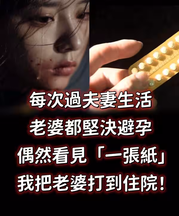 每次過夫妻生活 老婆都堅決避.孕 偶然看見「一張紙」我把老婆打到住院!