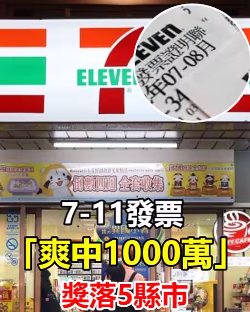 7~11發票「爽中1000萬」! 獎落5縣市,才花65元拿獎!
