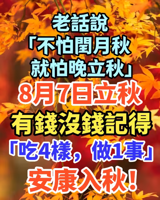 老人家說「不怕閏月秋,就怕晚立秋」,8月7日立秋,有錢沒錢記得「吃4樣,做1事」安康入秋!