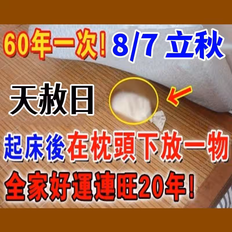 就在8月7號「立秋+天赦日」起床牢記在枕頭下放一物,隔天就有橫財降臨!全家好運連旺20年