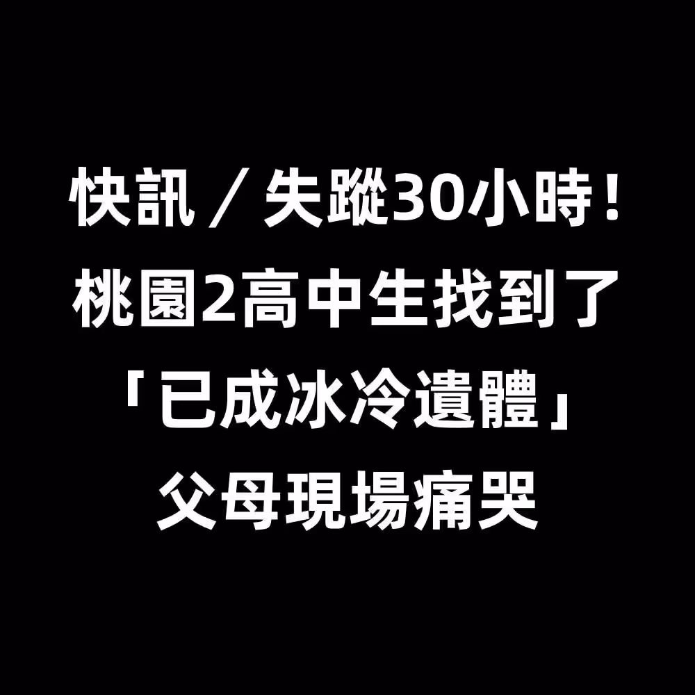 快訊/失蹤30小時!桃園2高中生找到了「已成冰冷遺體」 父母奔現場痛哭失聲!