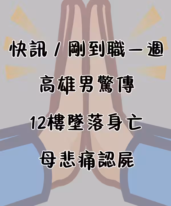快訊/剛到職一周!高雄男驚傳「12樓.墜.落.身.亡」身份曝光 母悲痛認屍