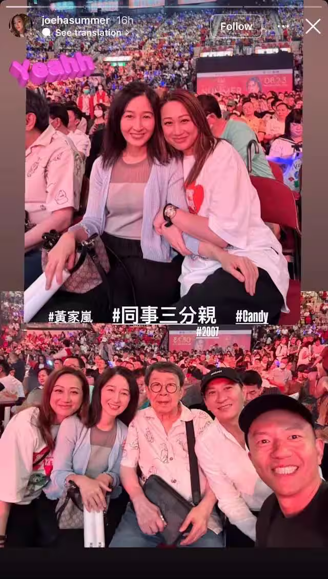 張家輝關詠荷觀看演唱會,遇上舊同事親密合影,幾人凍齡依舊