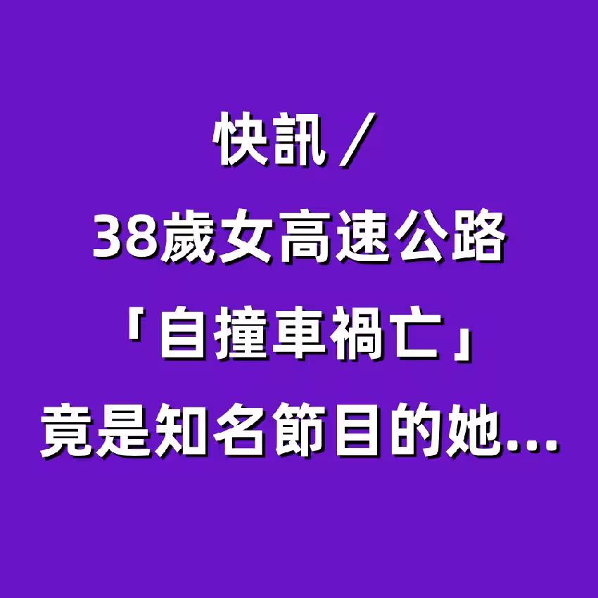 快訊/38歲女高速公路「自撞車禍亡」!竟是知名節目的她...