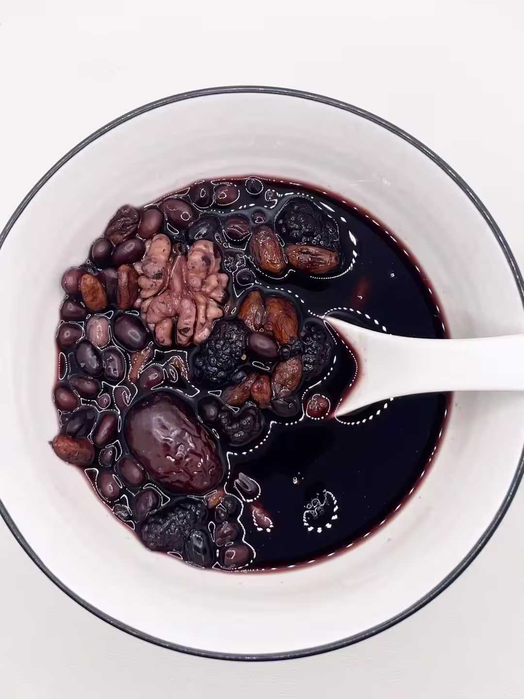 做法:黑豆和桑葚都淘洗乾淨。一起放入鍋中,加適量水。煮開後轉小火慢燉30分鐘即可。