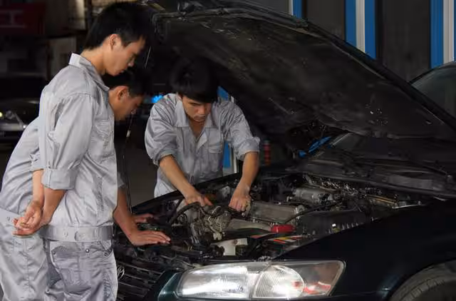 他開了一家修車店,我會在閒暇時間去店裡幫忙。