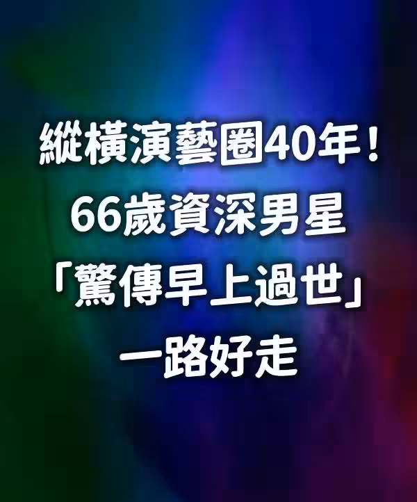 縱橫演藝圈40年!66歲資深男星「驚傳早上過世」一路好走。