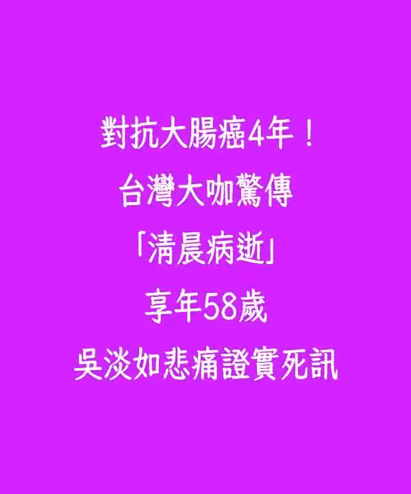 對抗大腸癌4年!台灣大咖驚傳「清晨病逝」享年58歲 吳淡如悲痛證實死訊.