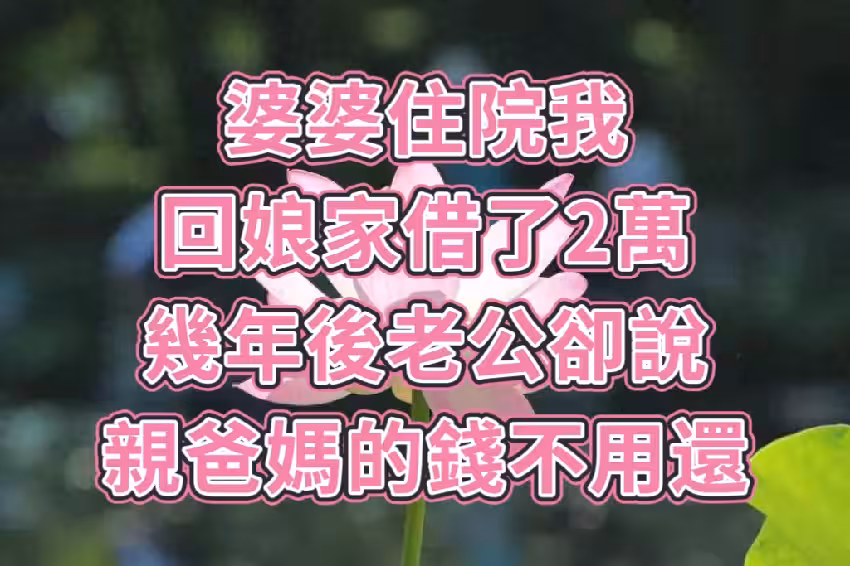 婆婆住院我回娘家借了2萬,幾年後老公卻說親爸媽的錢不用還。