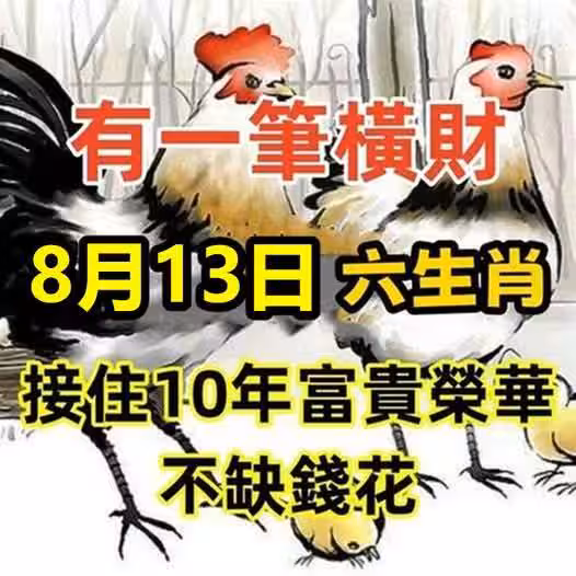 8月13日有一筆橫財,六生肖接住10年富貴榮華,不缺錢花.