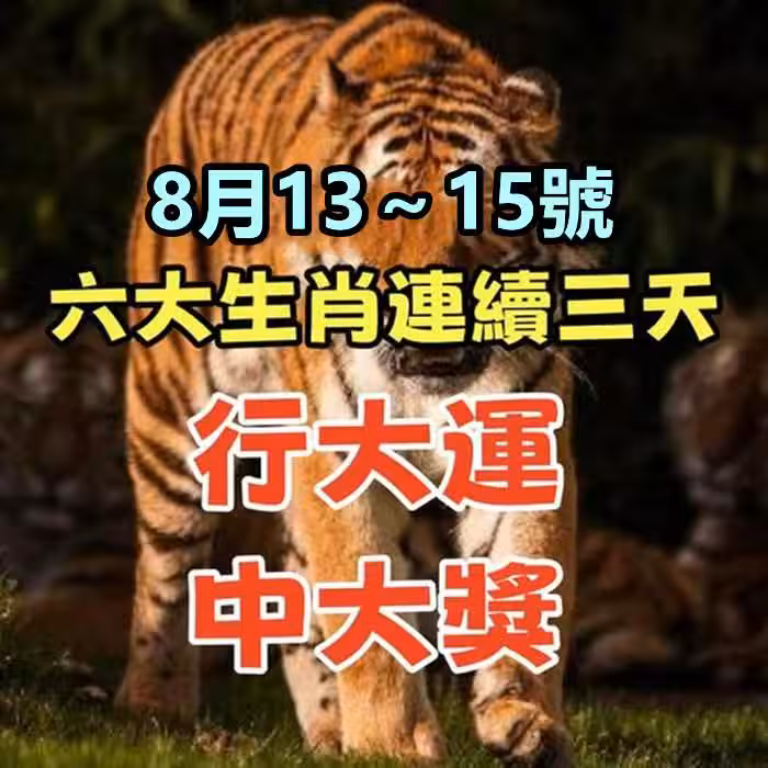 8月13~15號連續三天行大運,中大獎的六大生肖.