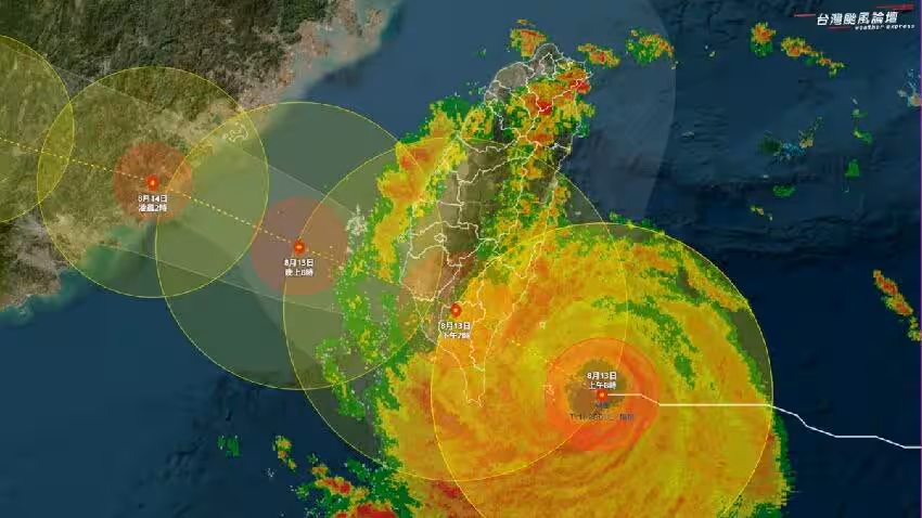 中央氣象署最新預報顯示,從中午12時到晚間6時,除了已宣布停班停課的雲林以南及花東地區外,還有四個縣市的風力預測達到停班停課標準。