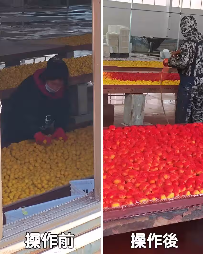 他偶然拍下「水果工廠」驚人一幕,黃色果實「噴藥水」秒變鮮紅,網崩潰:這不是我們常吃的它嗎?